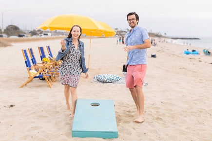 We would love to create your next corporate event. Our variety of beach chair styles and seat heights provide comfort for everyone. Our cabana and 7 foot shade umbrellas provide comfort and sun protection for all. Why not do some team bonding over a friendly game of cornhole or bocce ball on the beach? We can provide delivery of gorgeous charcutterie plates, fruit plates, or a variety of local restaurants. Our large tables make for beautiful buffets! Beach Genie is perfect for teambuilding events, product launches, and corporate celebrations.